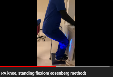 1. 촬영목적 대퇴골(femur) 원위부와 경골(tibia) 및 비골(fibula) 의 퇴행 및 골절 관찰 2. 촬영방법 2-1. 환자 자세 눕거나 서서 촬영한다. 의사의 선호나 지시를 따르자. 다리는 펴서 슬개골이 대퇴골
