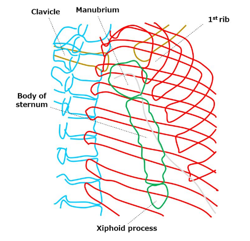 - 흉골체(body of sternum) 부터 검상돌기(xiphoid process) 까지 포함되도록 한다.