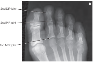 - IP 및 MTP 관절 공간이 AP Axial 투사에서 잘 열려 보여야 합니다.
