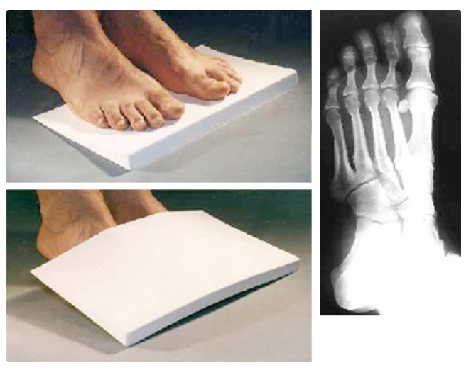 내측 사선 촬영법은 중족골(metatarsals)을 포함한 발의 중간(midfoot)과 후족(hindfoot) 관절을 더 잘 열리게 하기 때문에 외측 사선 촬영법보다 선호됩니다.Image Receptor (IR)10 × 12 inch (24 × 30 cm)Position of p