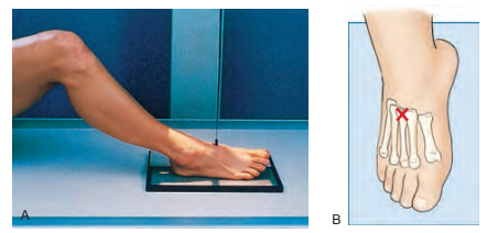 Image Receptor (IR)10 × 12 inch (24 × 30 cm), 길게 배치.Position of patient (환자 자세)환자를 앉거나, 바로 누운 자세(supine)로 위치시킵니다.영향을 받은 쪽의 무릎을 굽혀 발바닥이 방사선 테이블에 안정적으로 닿도록 합니다.Position of part (촬영 부위 자세)환자의 발을 IR 위에 배치하고, 발의 긴 축과 IR의 축이 평행하도록 맞춥니다.발의 중족골 중 세 번째(base of third metatarsal)의 중간선에 IR 중심을 맞춥니다.발바닥을 IR의 면과 30도 각도로 회전시키기 위해 다리를 외측으로 돌립니다.일정한 결과를 얻기 위해 발의 올린 쪽에 30도 경사 폼 웨지를 사용할 수 있습니다.생식선 보호 (Shield gonad..
